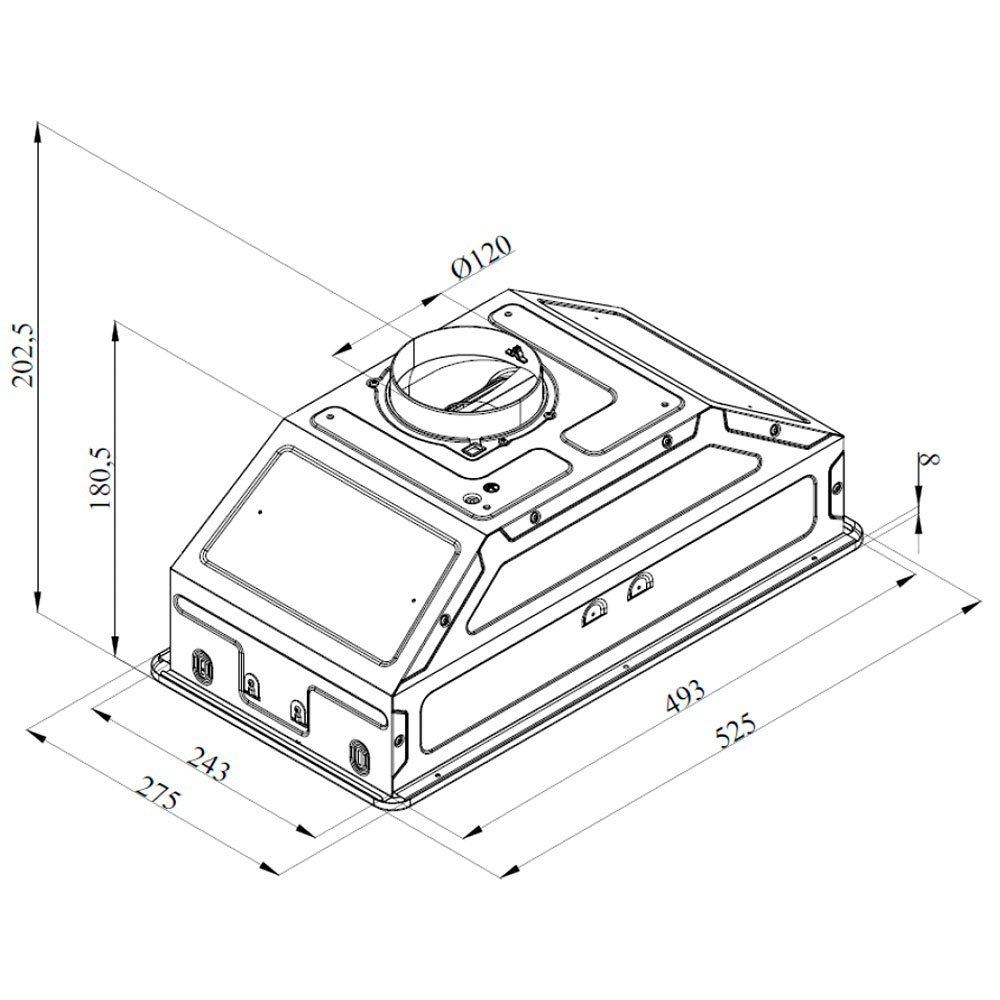 Описаниевытяжка встраиваемая в подвесной шкаф, 60 см, 800 м3/ч, нержавеющая сталь