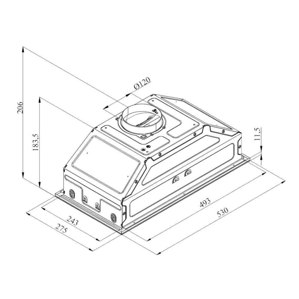 Описаниевытяжка встраиваемая в подвесной шкаф, 53 см, 800 м3/ч, бежевое стекло