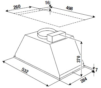 Описаниевытяжка встраиваемая в подвесной шкаф, 53,2 см, 598 м3/ч, нержавеющая сталь