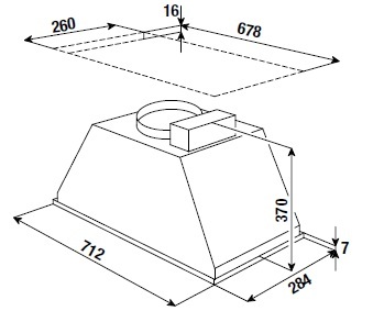 Описаниевытяжка встраиваемая в подвесной шкаф, 71 см, 816 м3/ч, нержавеющая сталь