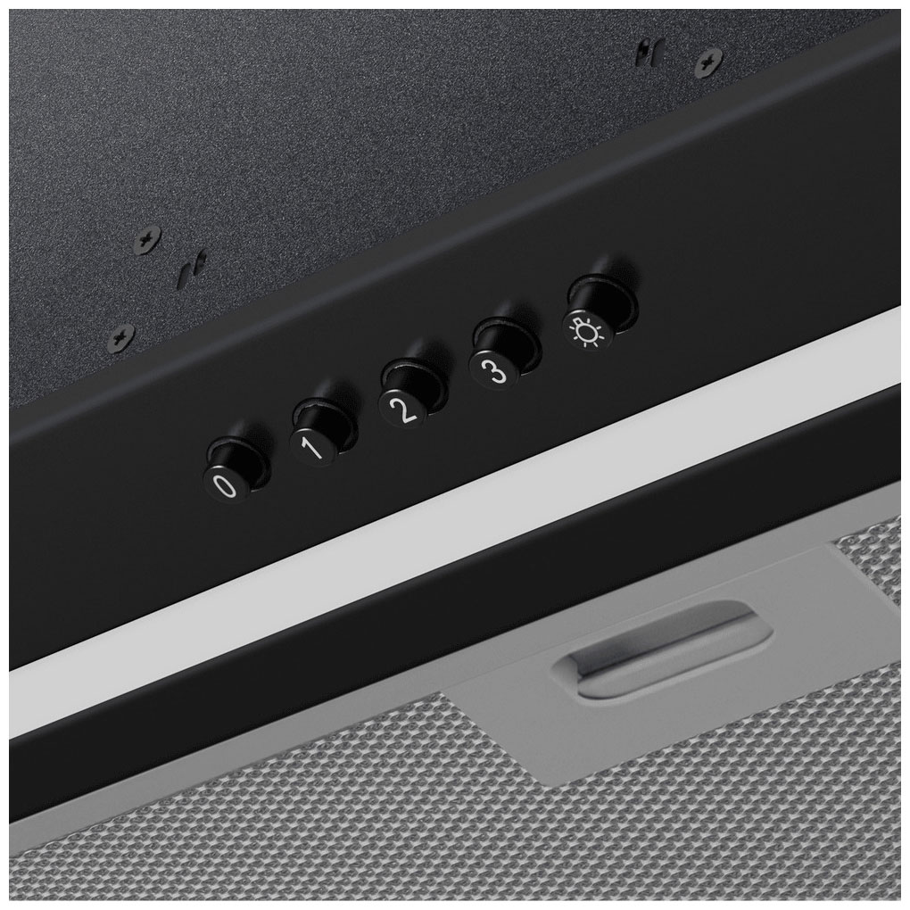 Описаниевытяжка встраиваемая в подвесной шкаф, 60 см, 850 м3/ч, черный