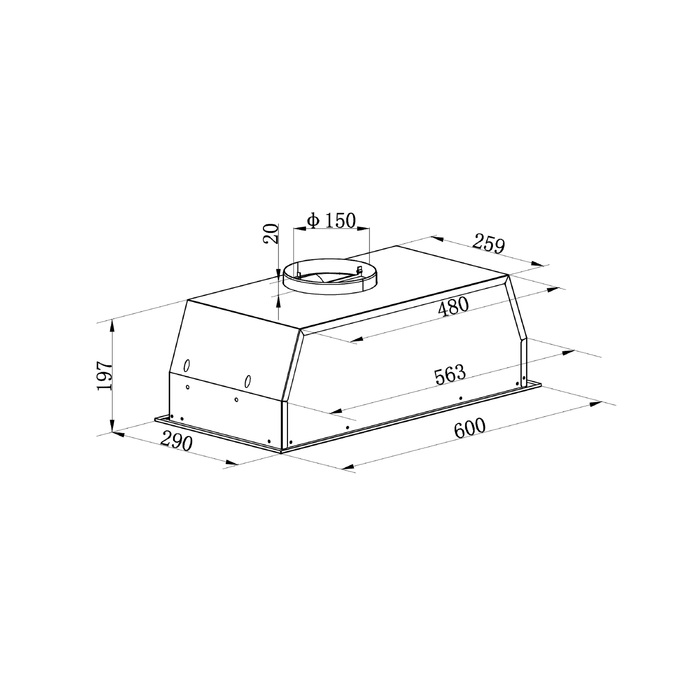 Описаниевытяжка встраиваемая в подвесной шкаф, 60 см, 870 м3/ч, белый