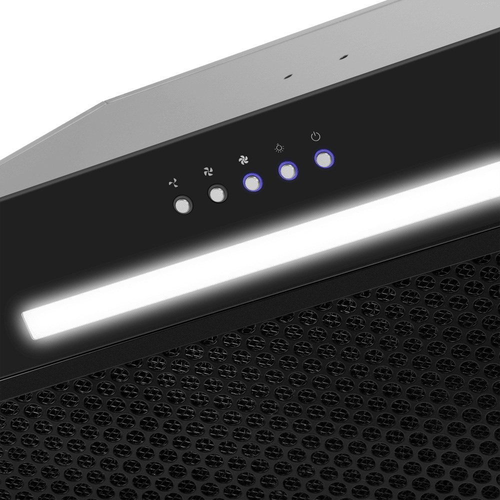 Описаниевытяжка встраиваемая в подвесной шкаф, 60 см, 1150 м3/ч, черный