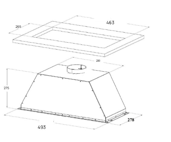 Описаниевытяжка встраиваемая в подвесной шкаф, 52 см, 1000 м3/ч, черное стекло
