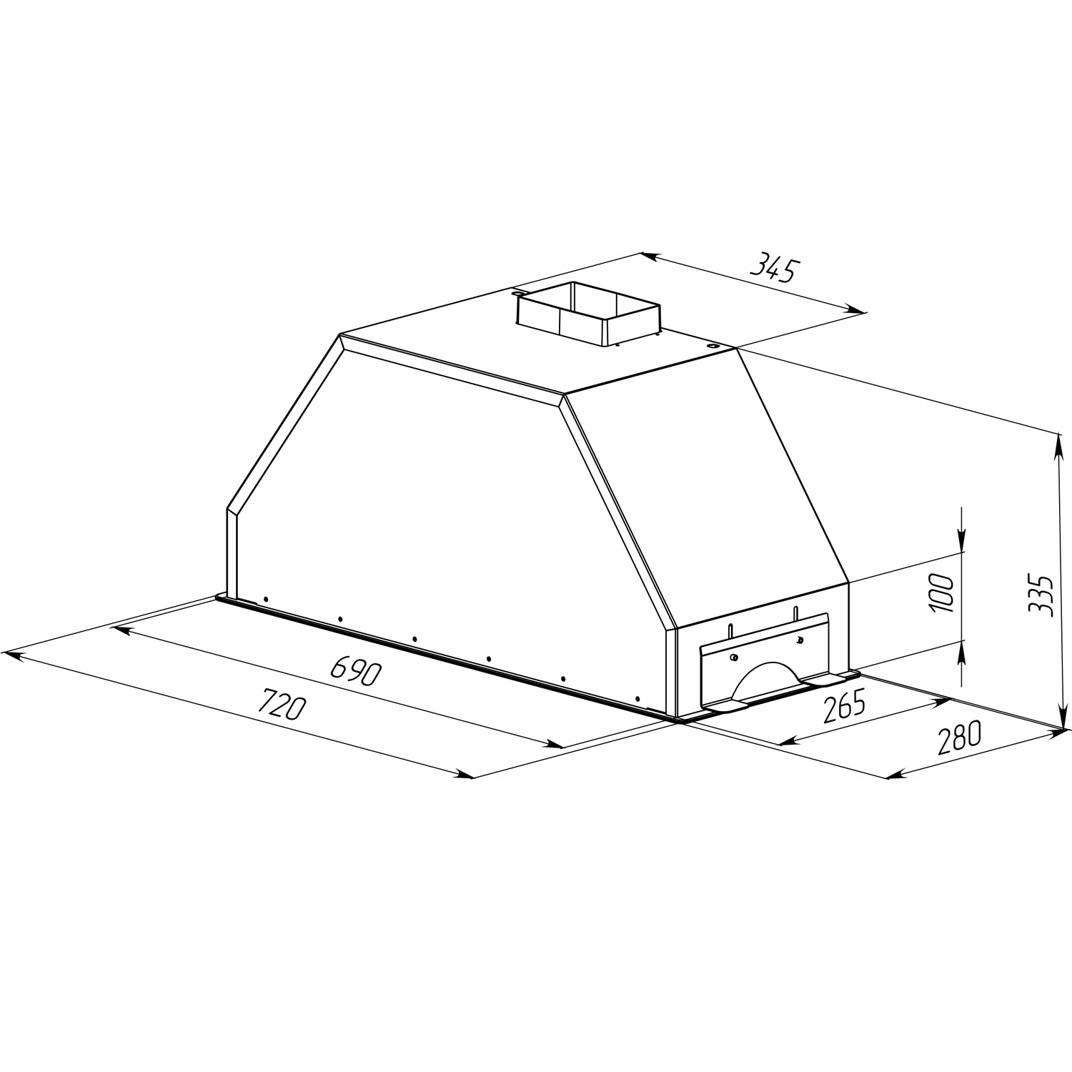 Описаниевытяжка встраиваемая в подвесной шкаф, 72 см, 1100 м3/час, бежевый