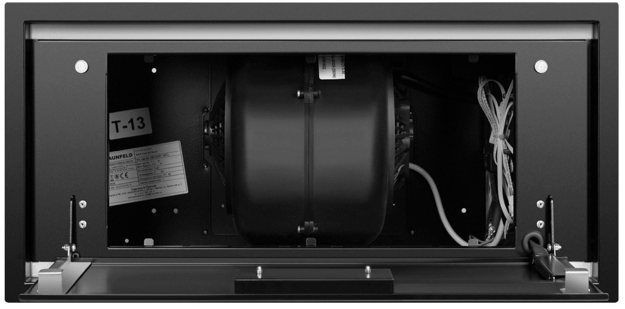 Описаниевытяжка встраиваемая в подвесной шкаф, 60 см, 1250 м3/ч, черный