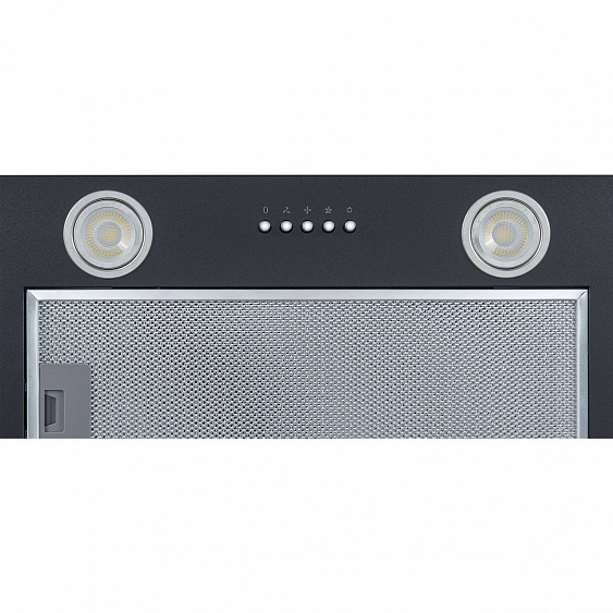 Описаниевытяжка встраиваемая в подвесной шкаф, 60 см, 1100 м3/ч, черный