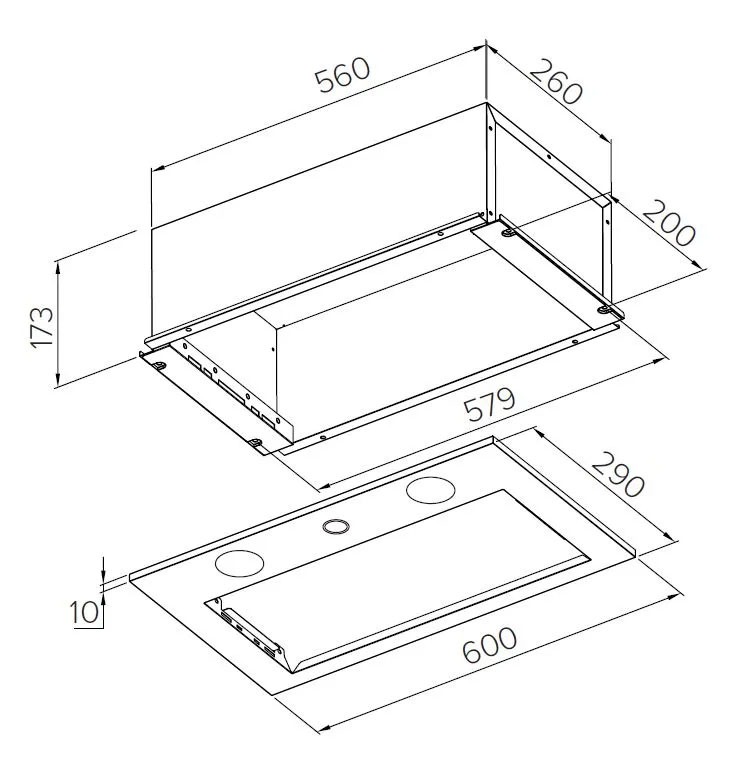 Описаниевытяжка встраиваемая в подвесной шкаф, 60 см, 950 м3/ч, нержавеющая сталь