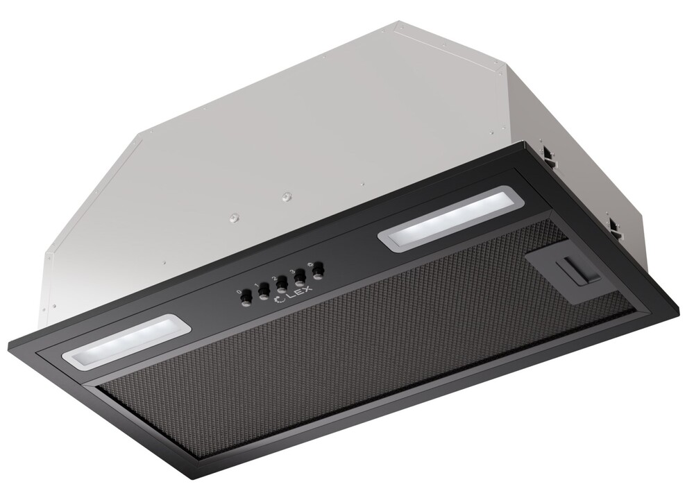 Описаниевытяжка встраиваемая в подвесной шкаф, 60 см, 1050 м3/ч, черный/черный