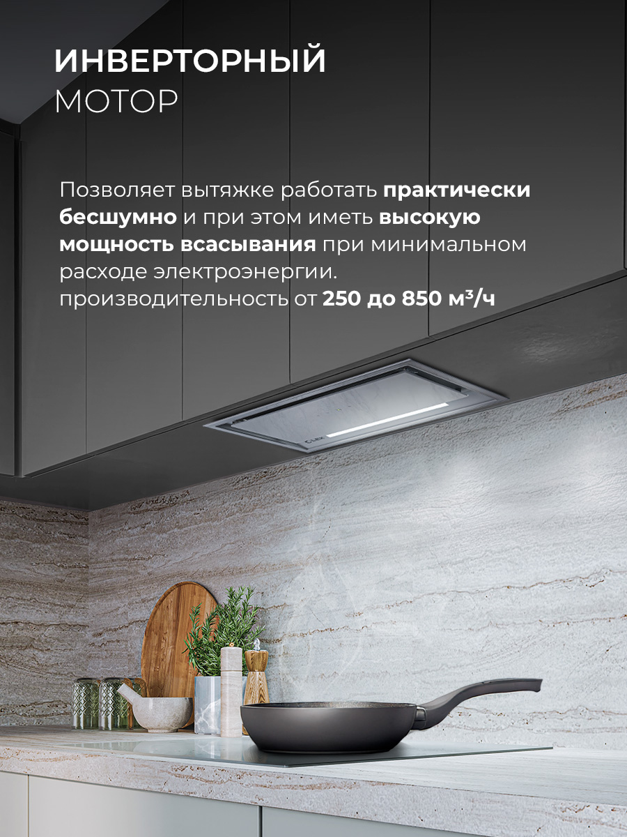Описаниевытяжка встраиваемая в подвесной шкаф, 60 см, 850 м3/ч, серый