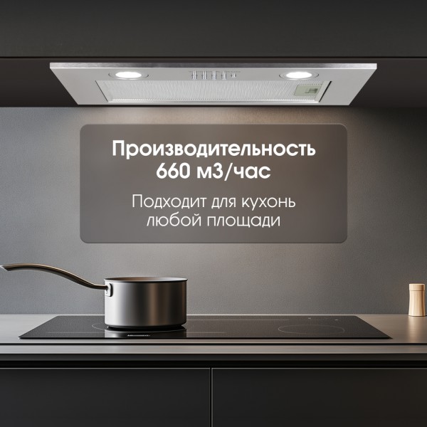 Описаниевытяжка встраиваемая в подвесной шкаф, 52 см, 660 м3/ч, нержавеющая сталь