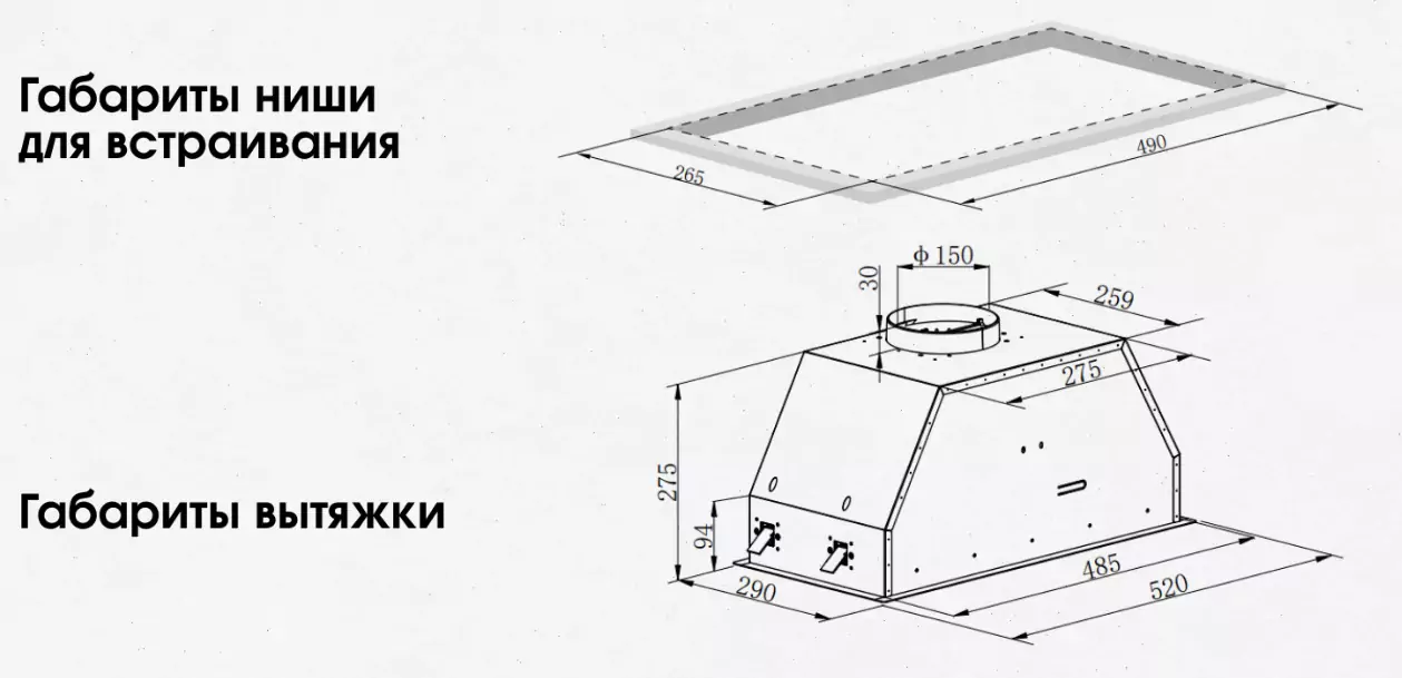 Описаниевытяжка встраиваемая в подвесной шкаф, 50 см, 1050 м3/час, белый