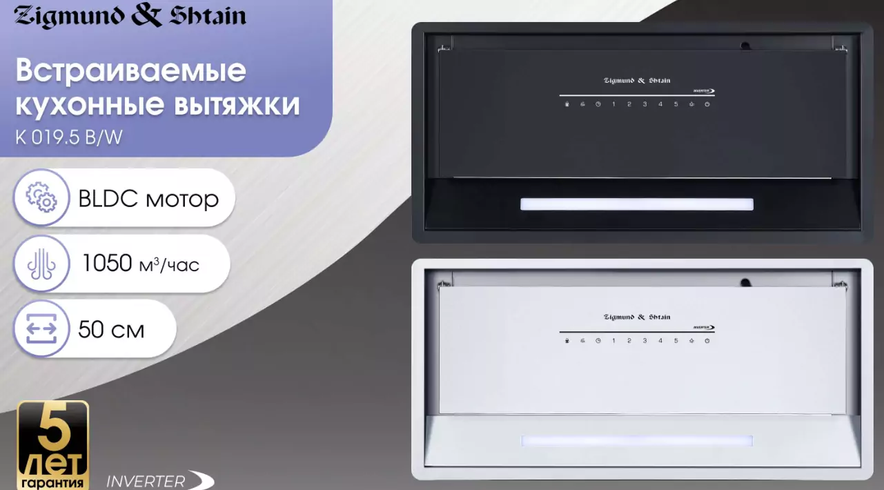 Zigmund & Shtain K 019.5 W Вытяжка в подвесной шкаф