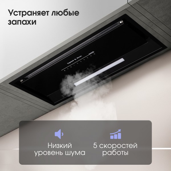 Описаниевытяжка встраиваемая в подвесной шкаф, 70 см, 1050 м3/ч, черный