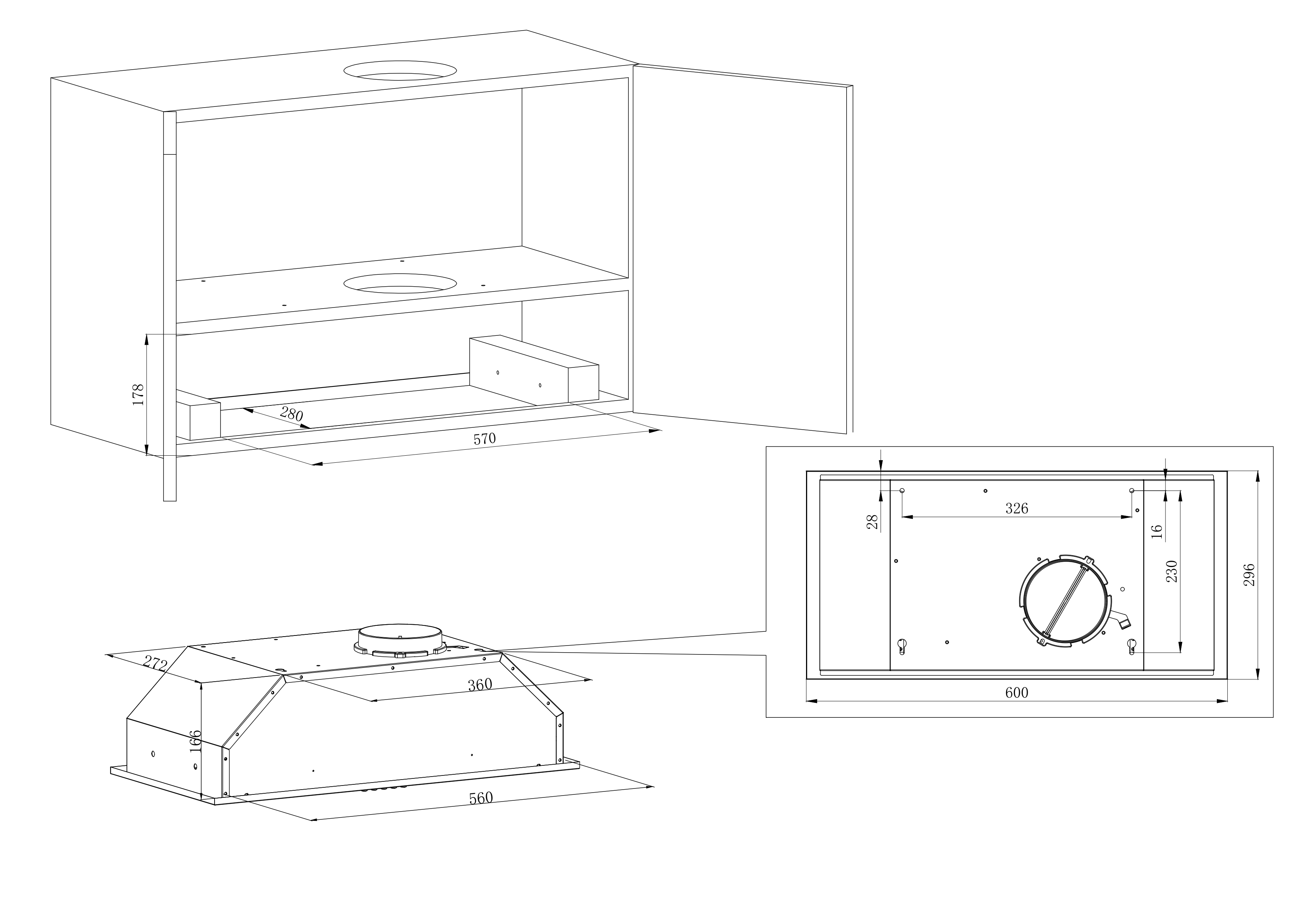 Описаниевытяжка встраиваемая в подвесной шкаф, 60 см, 400 м3/ч, нержавеющая сталь