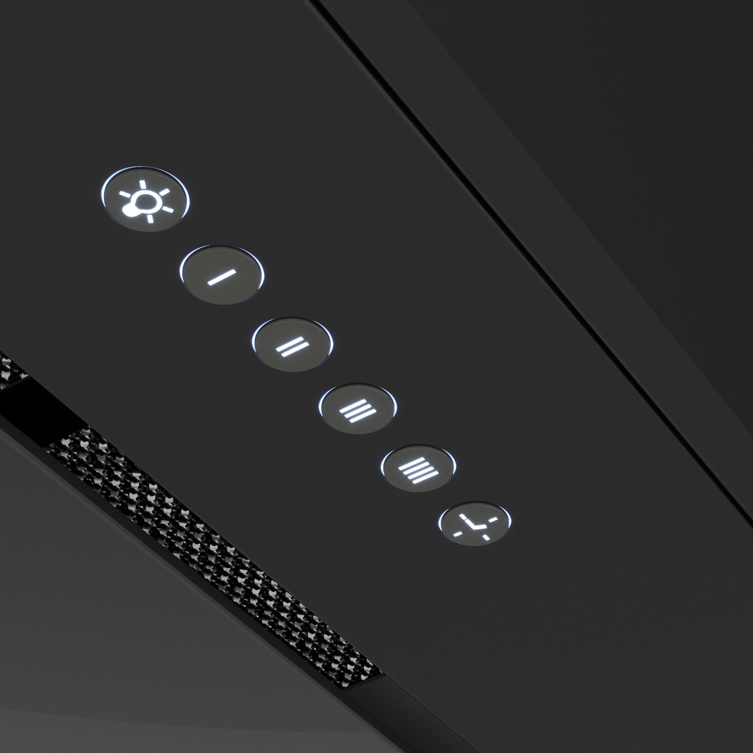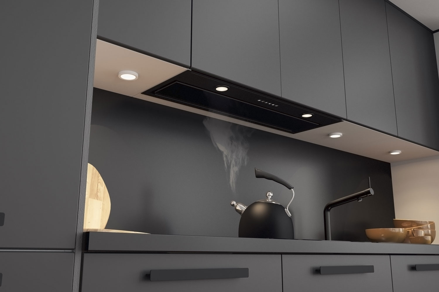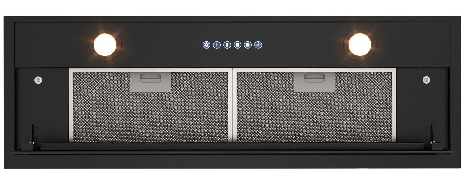 Описаниевытяжка встраиваемая в подвесной шкаф, 90 см, 1000 м3/ч, черный