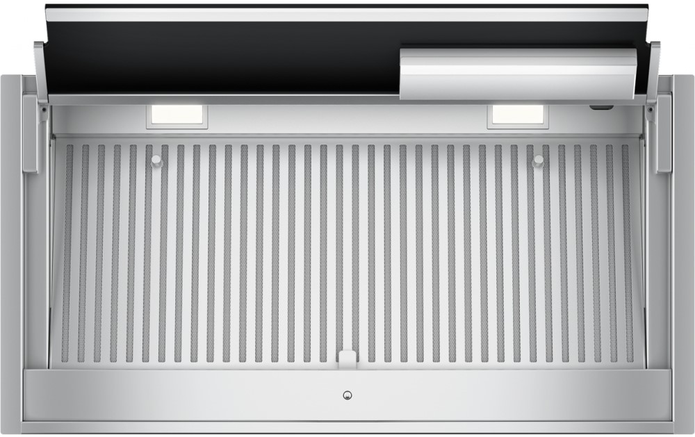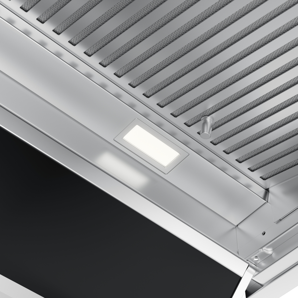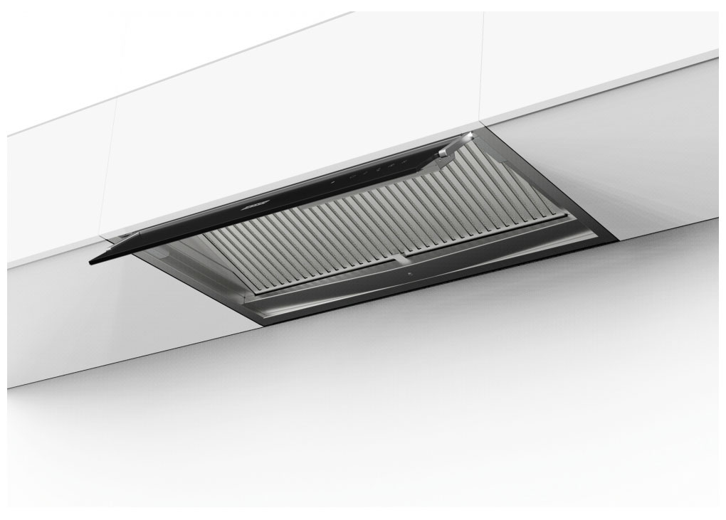 Описаниевытяжка встраиваемая в подвесной шкаф, 60 см, 1050 м3/ч, нержавеющая сталь/черное стекло