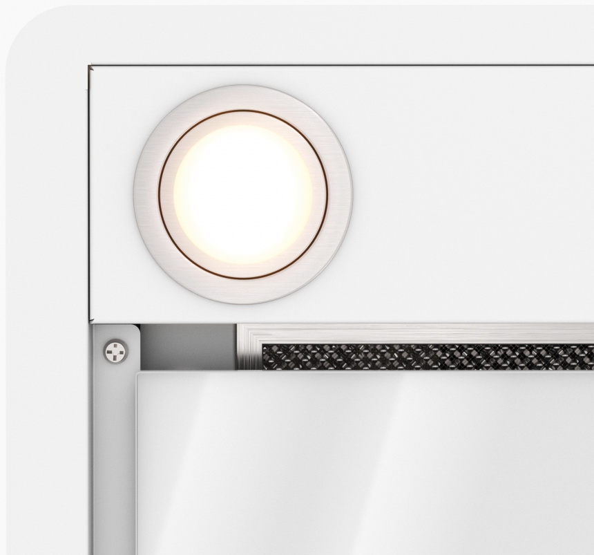 Описаниевытяжка встраиваемая в подвесной шкаф, 52 см, 1000 м3/ч, белое стекло/нержавеющая сталь