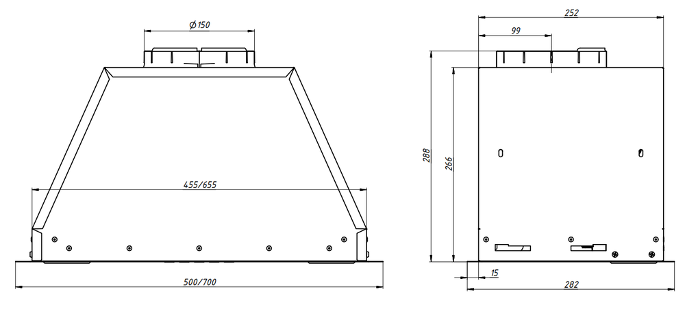 Описаниевытяжка встраиваемая в подвесной шкаф, 72 см, 1000 м3/ч, бежевый