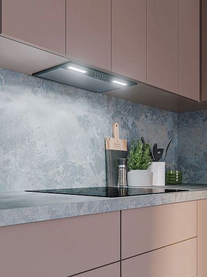 Описаниевытяжка встраиваемая в подвесной шкаф, 60 см, 850 м3/ч, черный/нержавеющая сталь