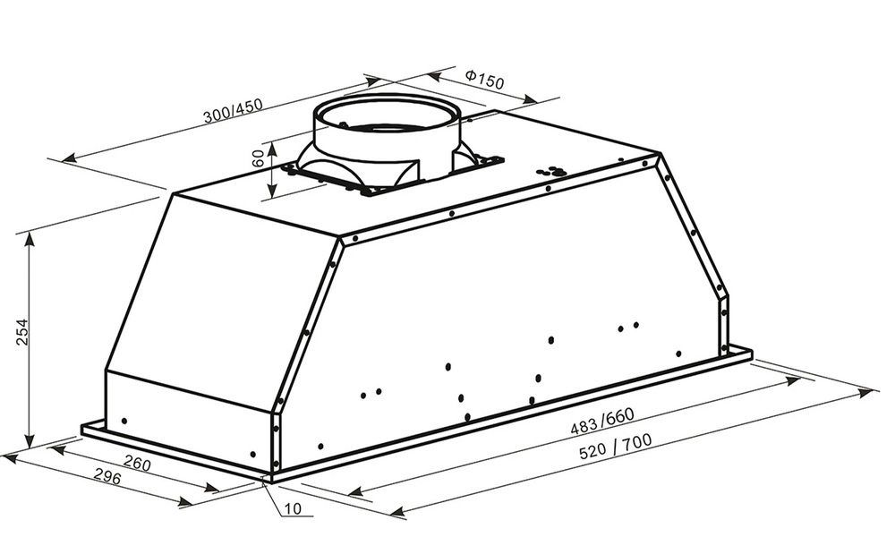 Описаниевытяжка встраиваемая в подвесной шкаф, 52 см, 1000 м3/ч, стальной