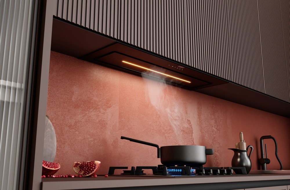 Описаниевытяжка встраиваемая в подвесной шкаф, 90 см, 1000 м3/ч, черный