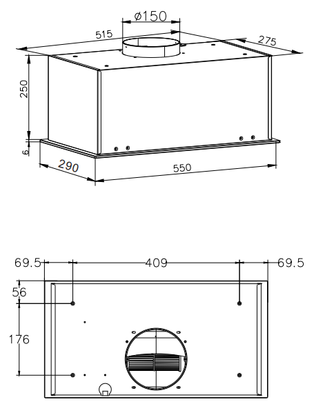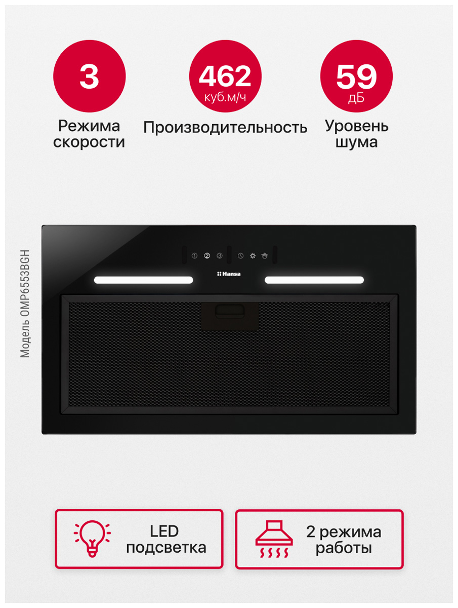 Описаниевытяжка встраиваемая в подвесной шкаф, 55 см, 500 м3/ч, черный