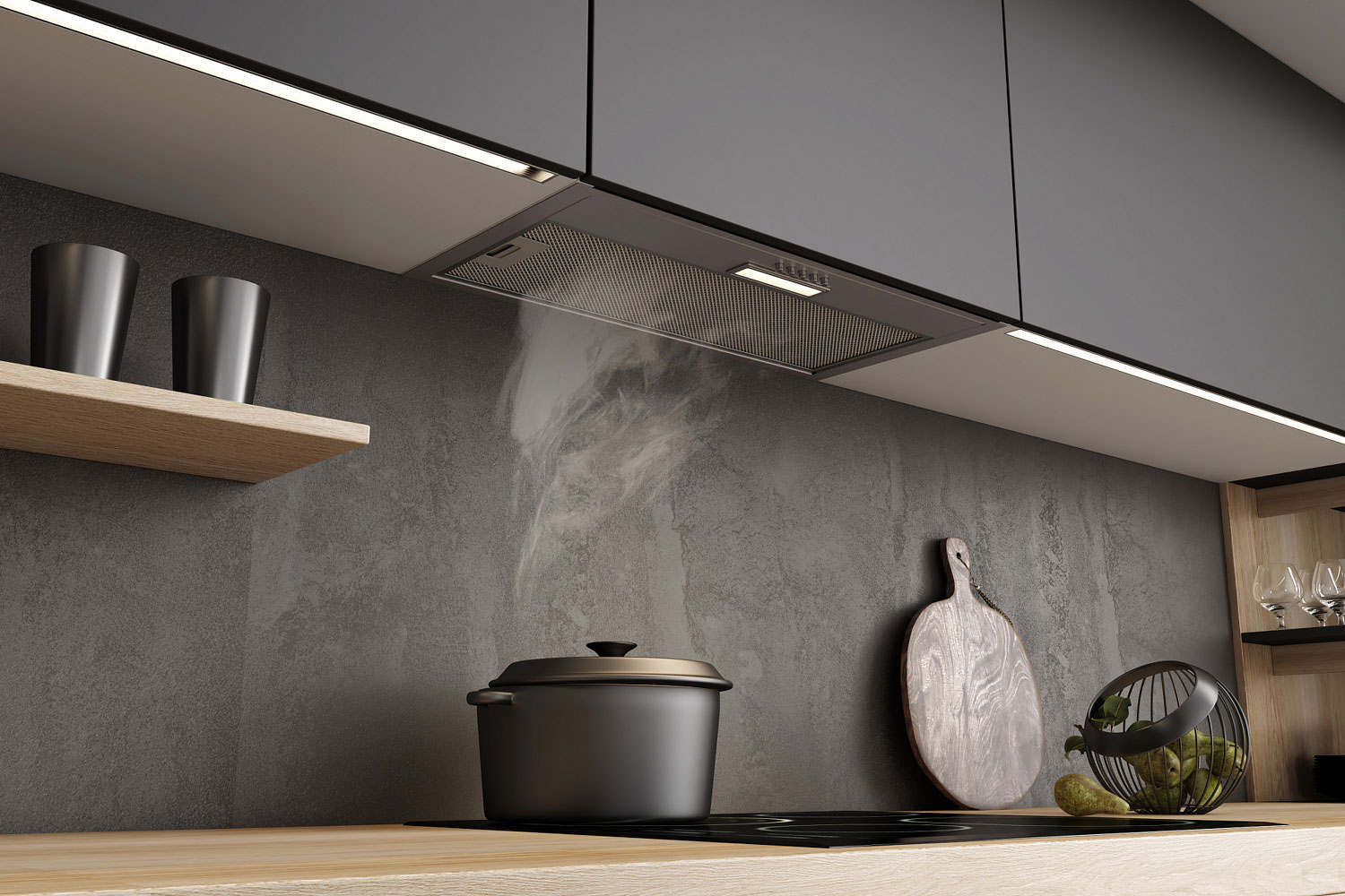 Описаниевытяжка встраиваемая в подвесной шкаф, 60 см, 500 м3/ч, хром