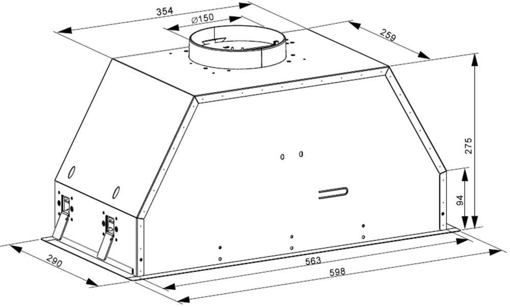 Описаниевытяжка встраиваемая в подвесной шкаф, 60 см, 850 м3/ч, черный