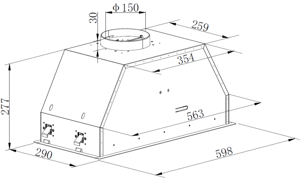 Описаниевытяжка встраиваемая в подвесной шкаф, 60 см, 850 м3/ч, черный