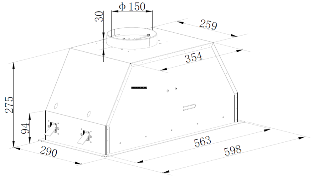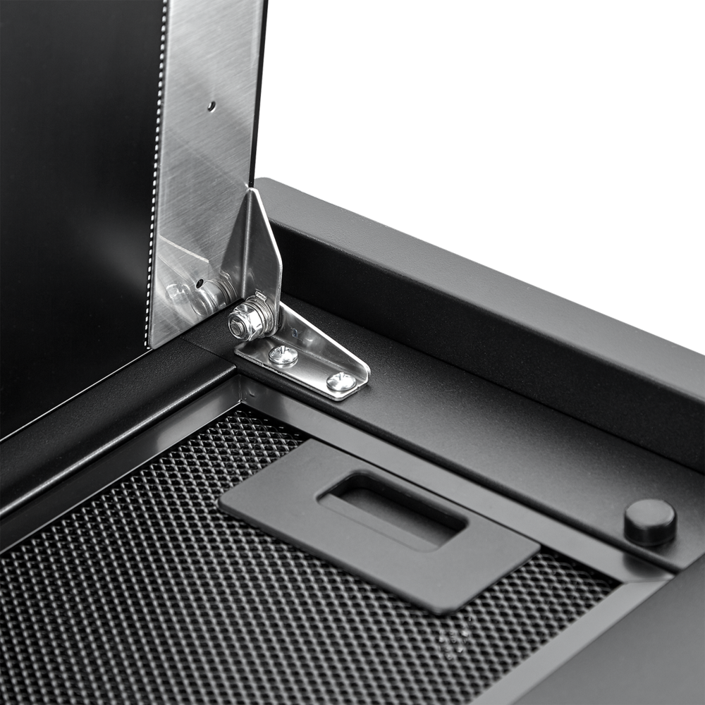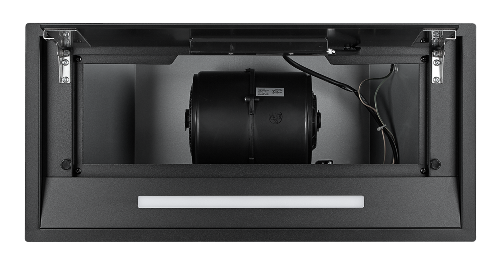 Описаниевытяжка встраиваемая в подвесной шкаф, 60 см, 850 м3/ч, черный
