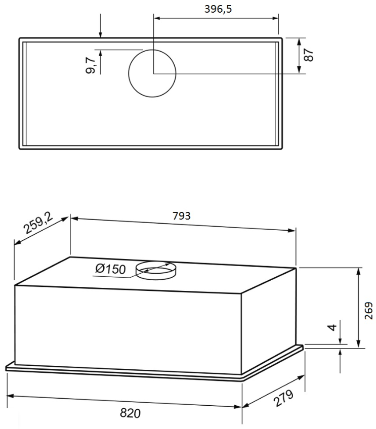 Описаниевытяжка встраиваемая в подвесной шкаф, 82 см, 1180 м3/ч, белый