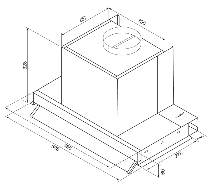 Описаниевытяжка встраиваемая в подвесной шкаф, 60 см, 1100 м3/ч, черный