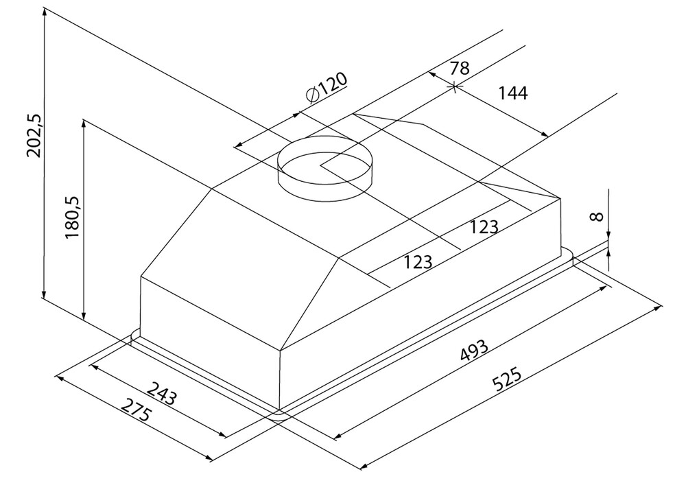 Описаниевытяжка встраиваемая в подвесной шкаф, 53 см, 700 м3/ч, нержавеющая сталь