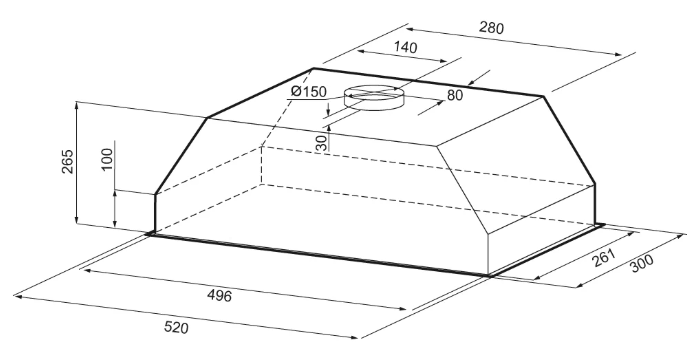 Описаниевытяжка встраиваемая в подвесной шкаф, 52 см, 1100 м3/ч, белый