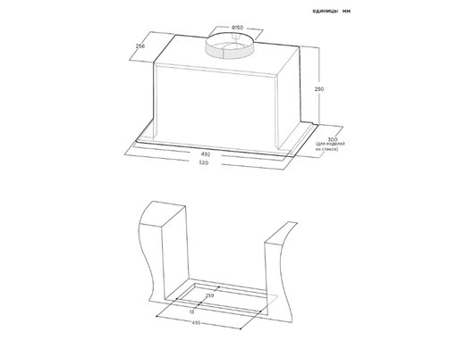 Описаниевытяжка встраиваемая в подвесной шкаф, 52 см, 900 м3/час, черный