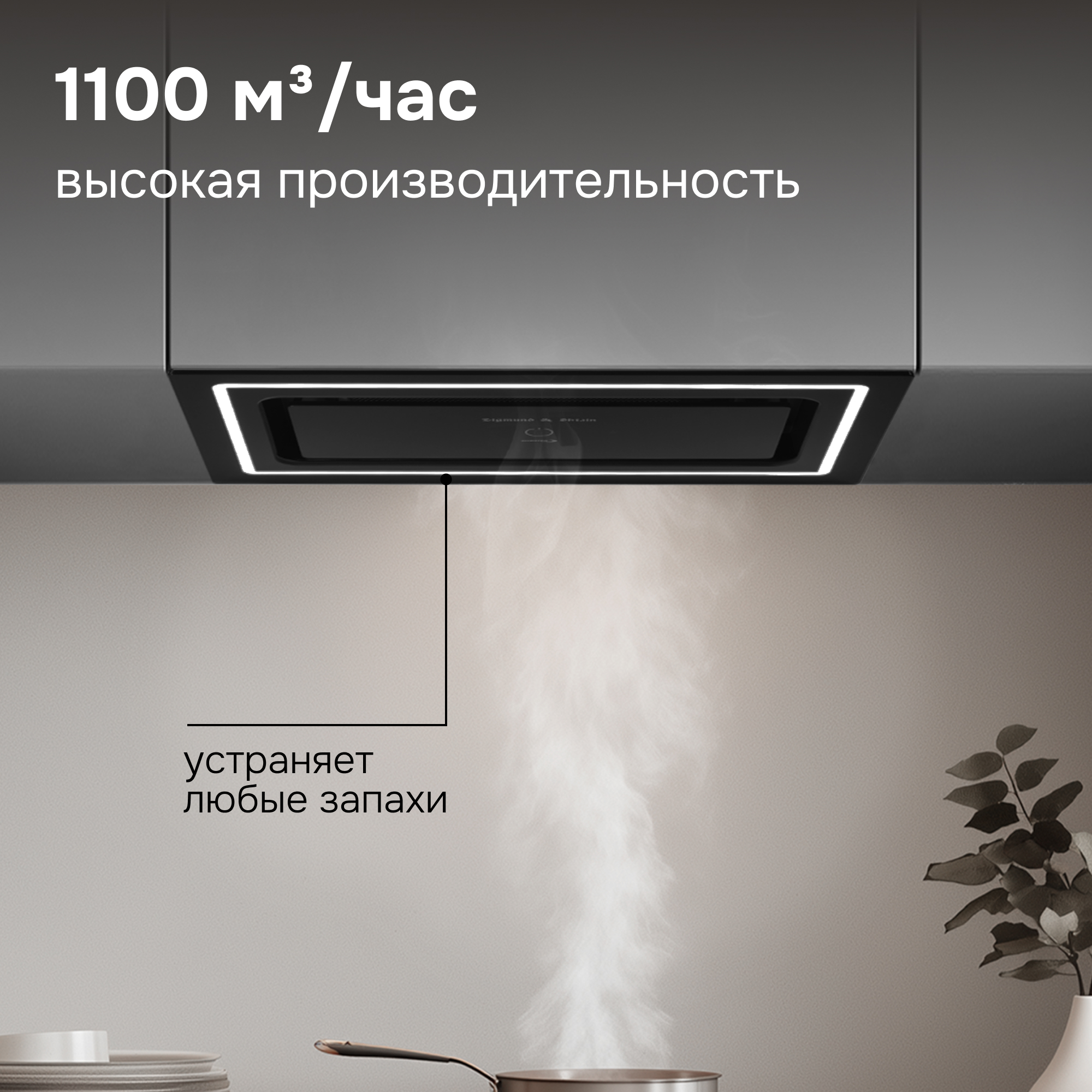 Описаниевытяжка встраиваемая в подвесной шкаф, 52 см, 1100 м3/ч, черный