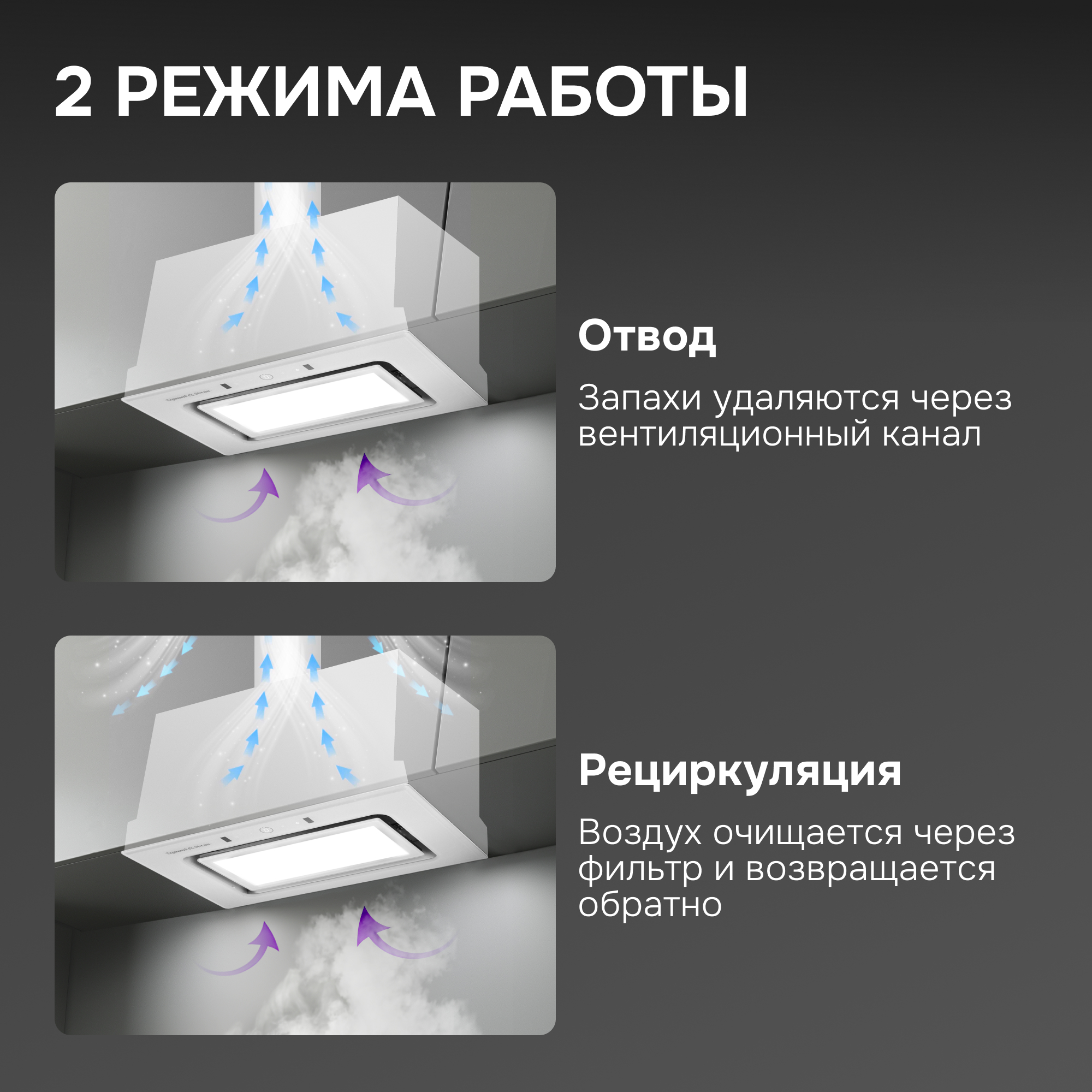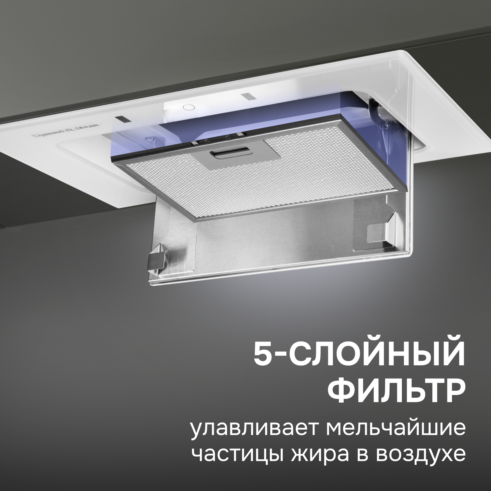 Описаниевытяжка встраиваемая в подвесной шкаф, 52 см, 1200 м3/ч, белый