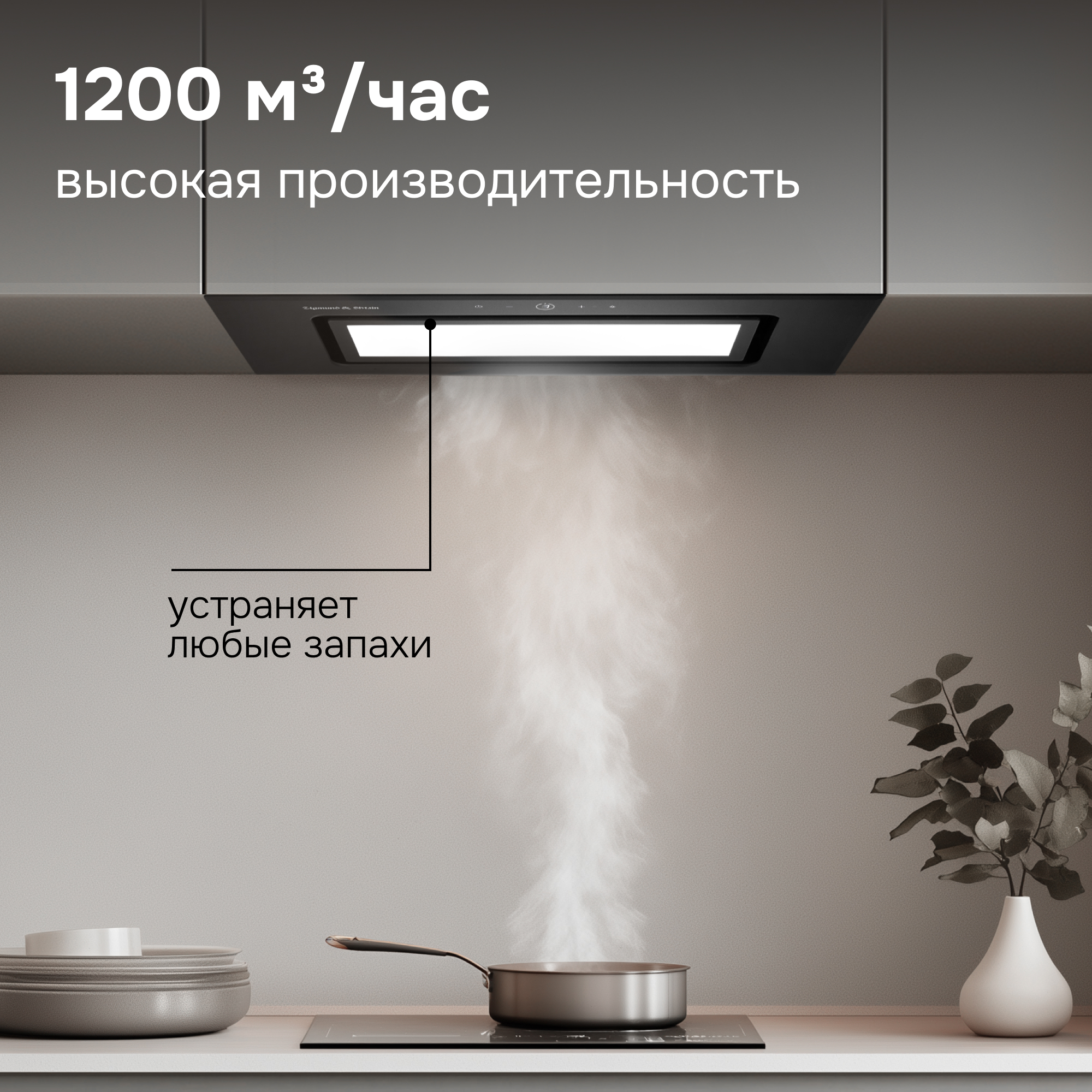 Описаниевытяжка встраиваемая в подвесной шкаф, 75 см, 1200 м3/ч, черный