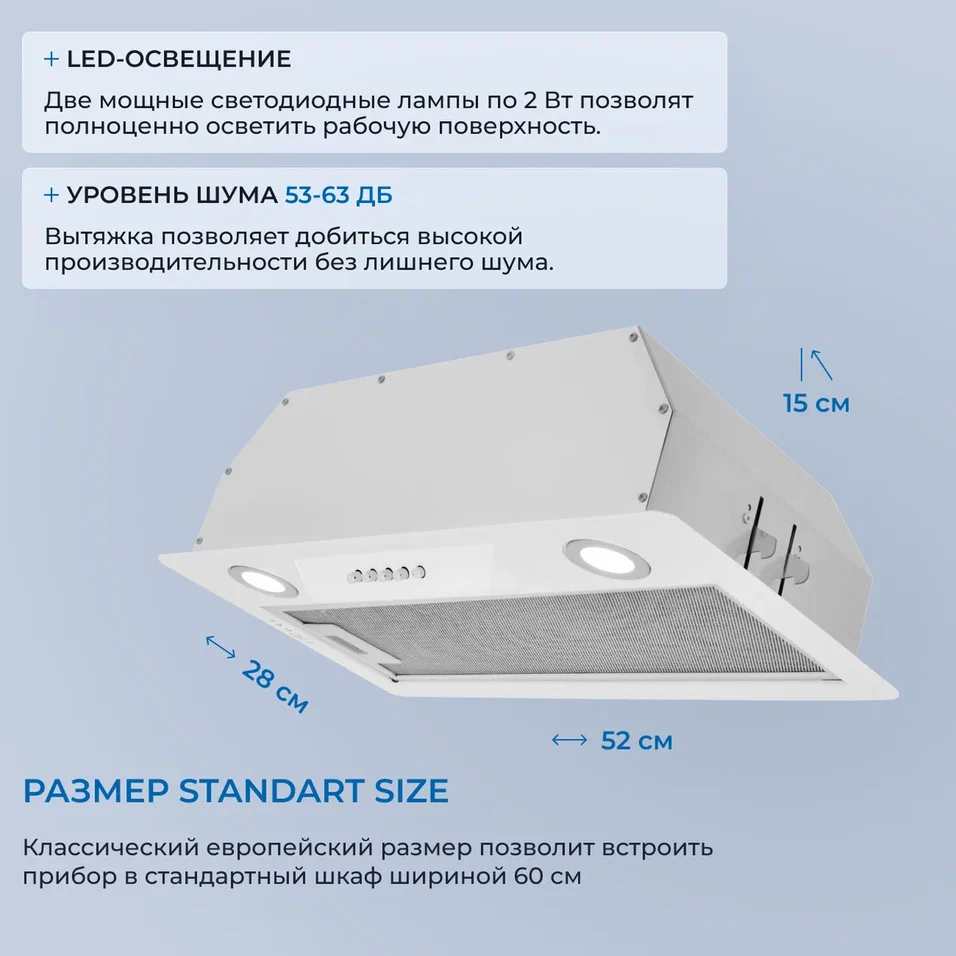 Описаниевытяжка встраиваемая в подвесной шкаф, 52 см, 400 м3/час, белый