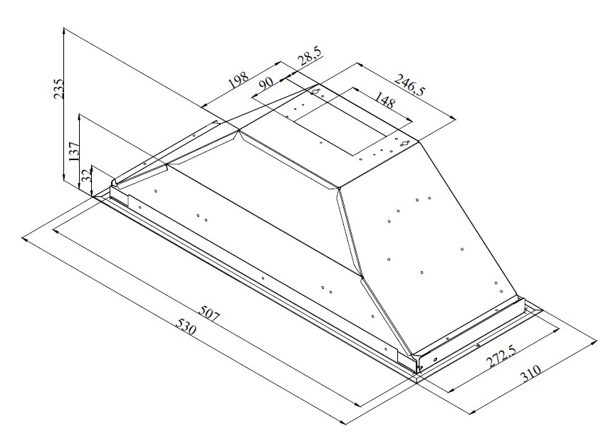 Описаниевытяжка встраиваемая в подвесной шкаф, 53 см, 381 м3/час, серебристый
