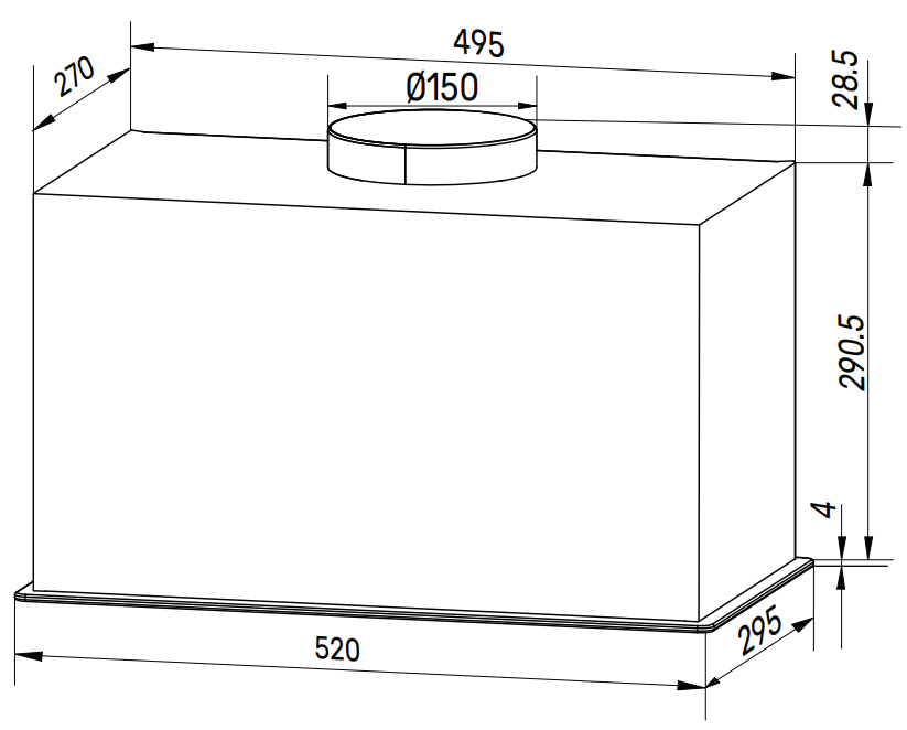 Описаниевытяжка встраиваемая в подвесной шкаф, 52 см, 750 м3/час, белый