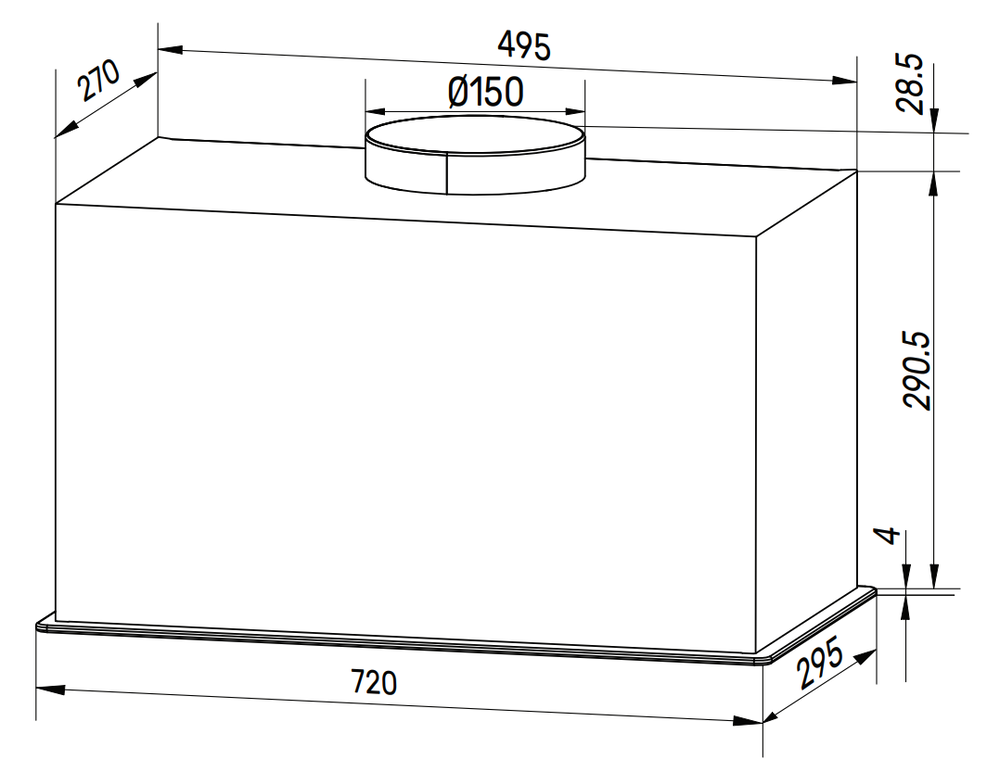 Описаниевытяжка встраиваемая в подвесной шкаф, 72 см, 750 м3/час, черный