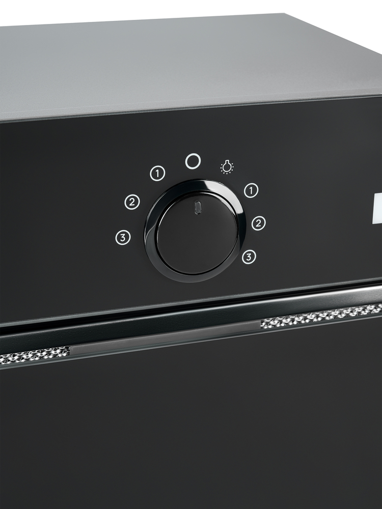 Описаниевытяжка встраиваемая в подвесной шкаф, 60 см, 800 м3/ч, черный, Полностью встраиваемая вытяжка с переметрическим всасыванием, воздушный поток 800м3/час, управление - поворотный регулятор, корпус с местом для хранения специй