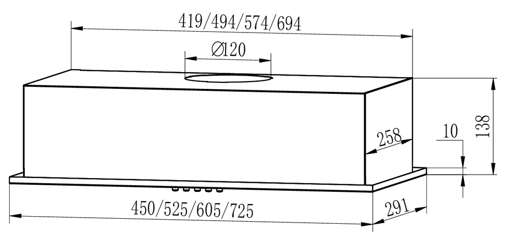 Описаниевытяжка встраиваемая в подвесной шкаф, 45 см, 400 м3/ч, черный