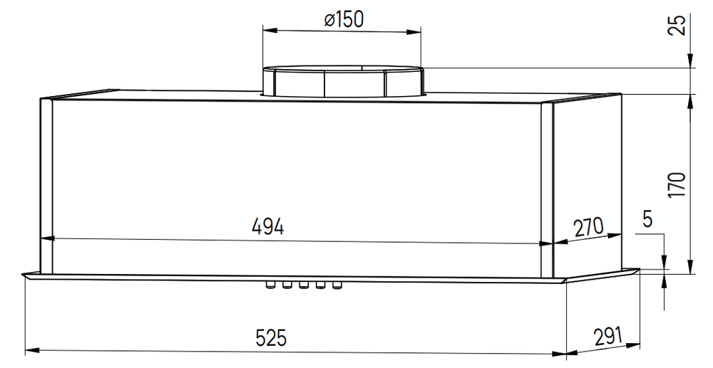 Описаниевытяжка встраиваемая в подвесной шкаф, 52 см, 650 м3/ч, черный