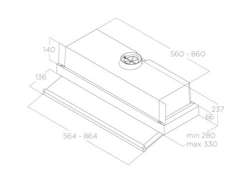 Описаниевытяжка встраиваемая в подвесной шкаф, 57 см, 550 м3/ч, серый