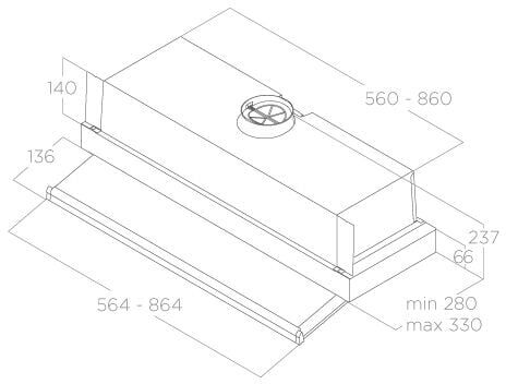 Описаниевытяжка встраиваемая в подвесной шкаф, 57 см, 900 м3/ч, серый+стекло