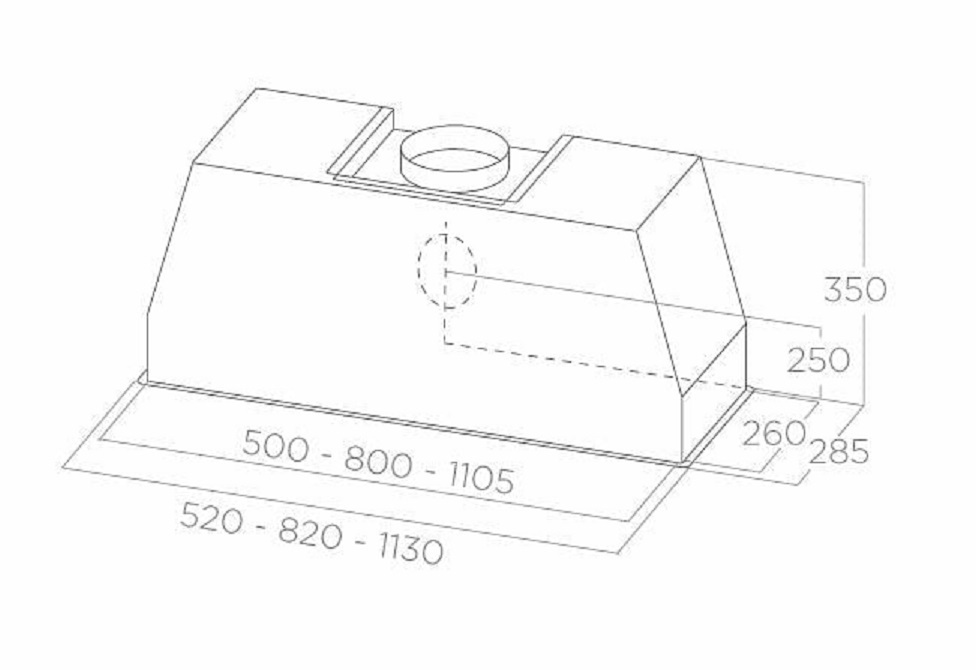 Описаниевытяжка встраиваемая в подвесной шкаф, 52 см, 1300 м3/ч, нержавеющая сталь