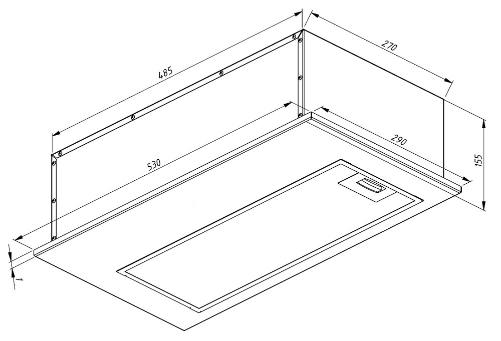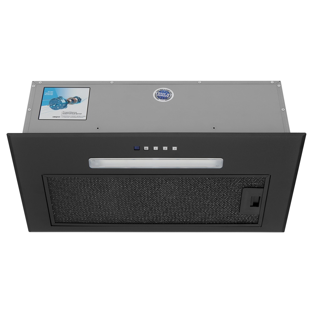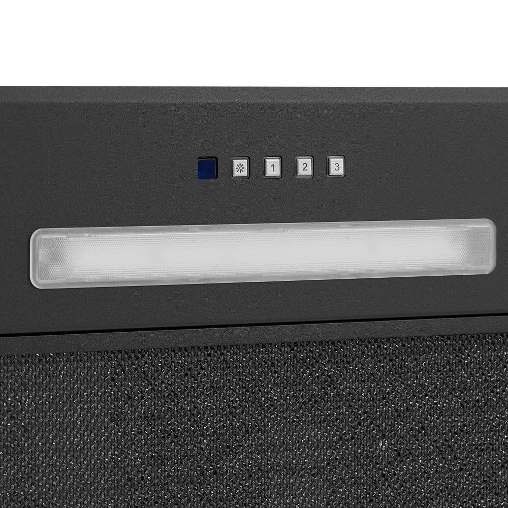 Описаниевытяжка встраиваемая в подвесной шкаф, 53 см, 1080 м3/ч, черный